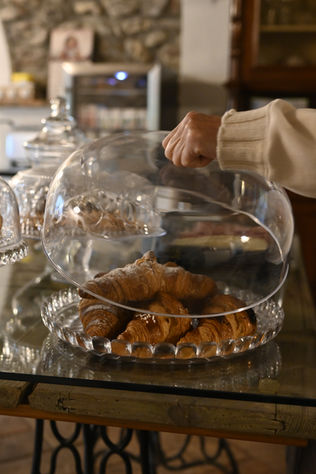Torte e yogurt fatti in casa, croissant e pane fresco, uova e affettati, caffè, cappuccini e tanto altro ancora.